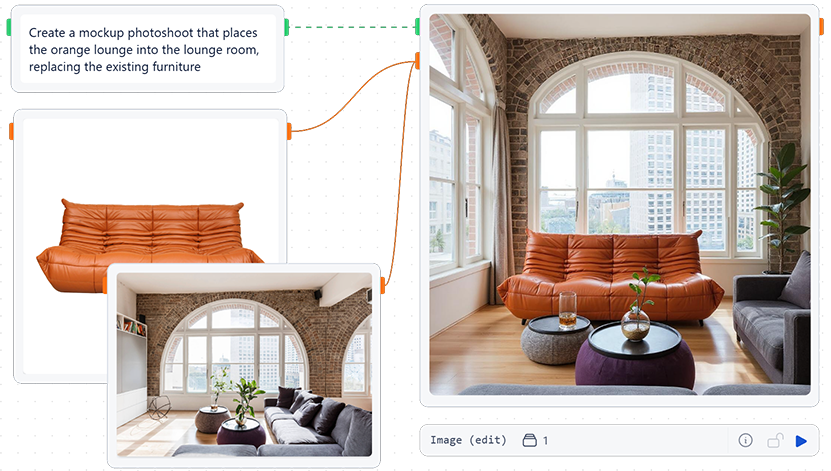 The solution to this problem was to abstract model names within our primary menu system, and then allow users to browse all models when configuring a node. This aimed to solve the problem of introducing new users to Runchat by allowing them to browse by what a model actually did (e.g. editing images or creating 3d meshes). Selecting one of these options would effectively choose a preset model that was best for that specific task, and this would change over time. However, on the node, the user would see the actual model being used and could configure this as required.