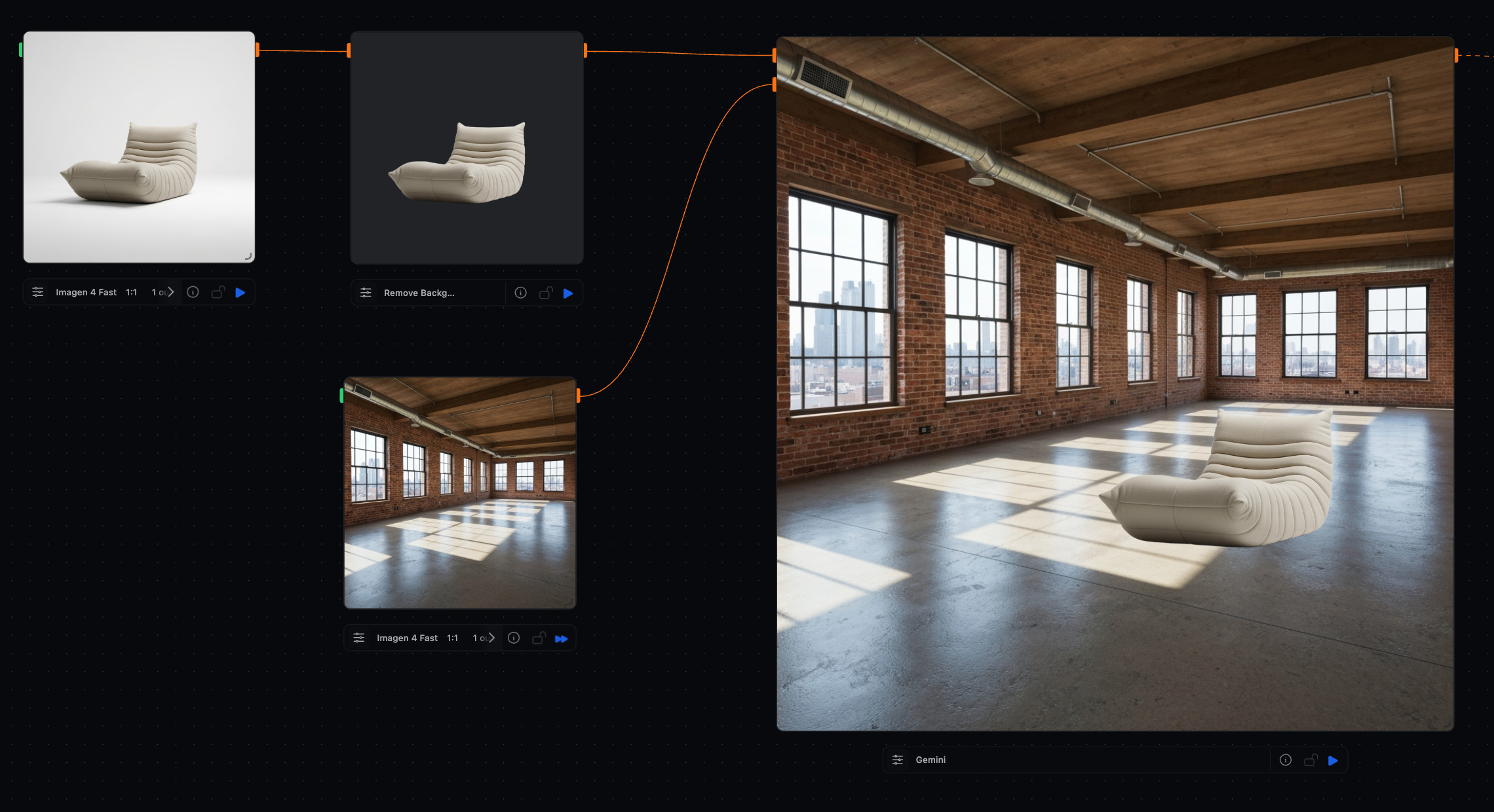 There are a bunch of new image editing models like Flux Kontext or Gemini’s native image generation that are great at placing one image into another. However, these models are fairly unreliable at present and without finetuning produce inconsistent results. It is much more powerful to give designers the ability to roughly setup the composition of their image and then using these same image editing models to polish it so that it looks as realistic as possible.