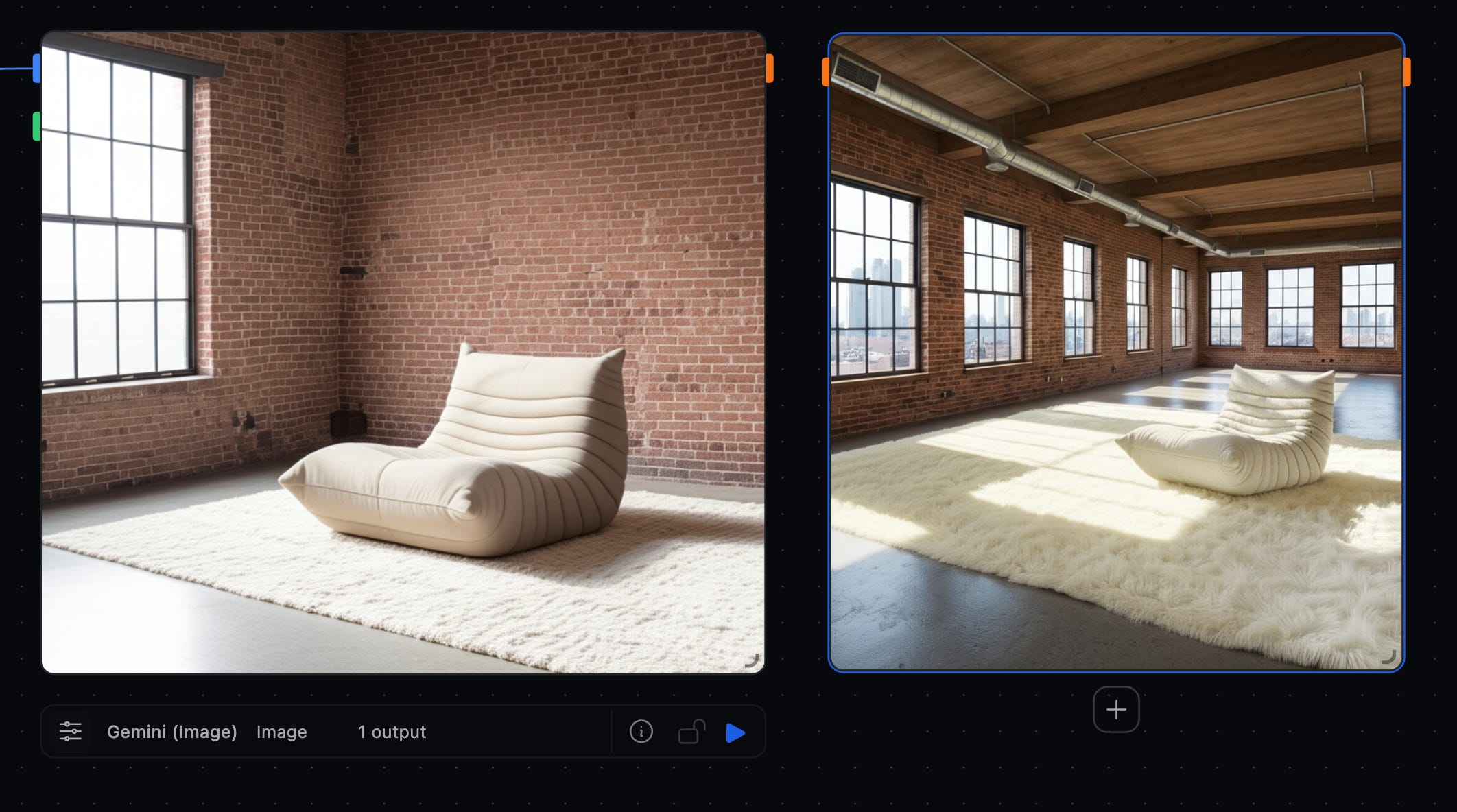 Left: providing the subject and background image separately to Gemini. Right: providing the composite image to Gemini. Both images are generated with the same prompt. The composite keeps our space and subject consistent while adding realistic details.