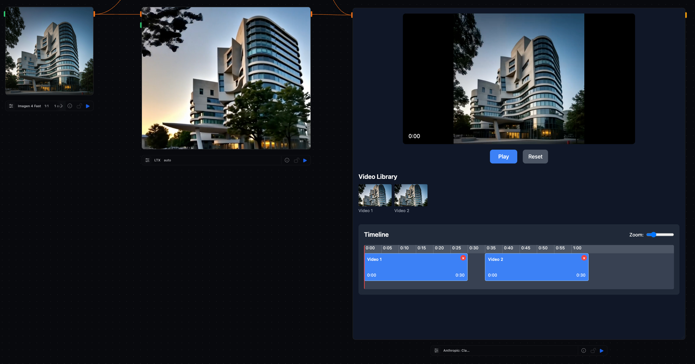 Its very easy to generate short videos in Runchat using models like LTX. The latest version of LTX can generate videos up to one minute long, and so the need for tools to cut up these clips and composite them together is getting real. It would be nice to be able to quickly splice several short videos together without needing to download and bring them into something like Clipchamp or Premiere. Language models are surprisingly good at generating UI for things like clips on timelines, and it is easy to create metadata that describes the start and end points of clips and where they are located on the timeline so that we could subsequently composite them together. This brings us to some of the challenges.